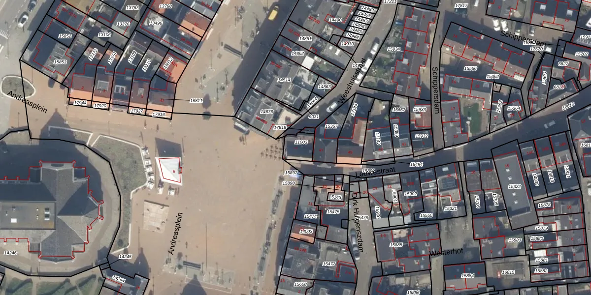 Het perceel waarop Andreasplein 7 staat heeft een oppervlakte van 87 m². Dit is een klein perceel. De perceeloppervlakte wordt geregistreerd door het Kadaster. Gedetailleerde informatie over de maten van dit perceel kunt u vinden in het rapport Kadastrale kaart met maatvoering van Andreasplein 7.