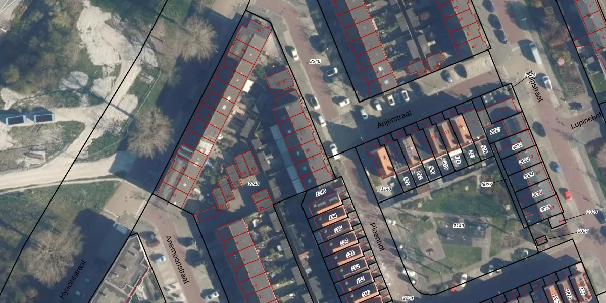 Het perceel waarop Anjerstraat 3-A staat heeft een oppervlakte van 3349 m². Dit is een zeer groot perceel. De perceeloppervlakte wordt geregistreerd door het Kadaster. Gedetailleerde informatie over de maten van dit perceel kunt u vinden in het rapport Kadastrale kaart met maatvoering van Anjerstraat 3-A.