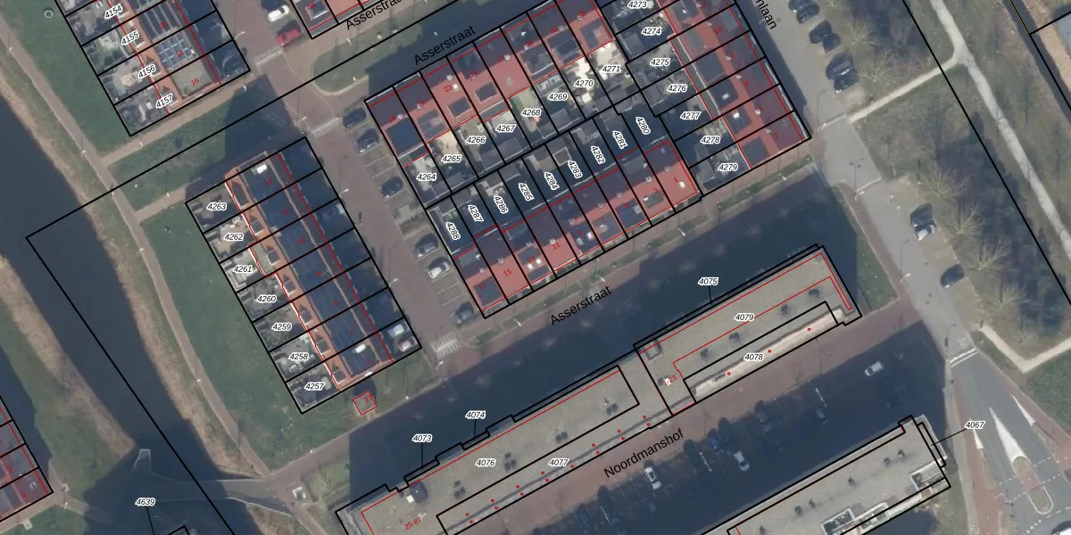 Asserstraat 13 is gelegen op kadastraal perceel KWK01C4286. Deze kadastrale aanduiding is uniek en wordt gebruikt door het Kadaster om eigendomsrechten en andere zakelijke rechten vast te leggen. Het perceel maakt onderdeel uit van de kadastrale gemeente Katwijk.