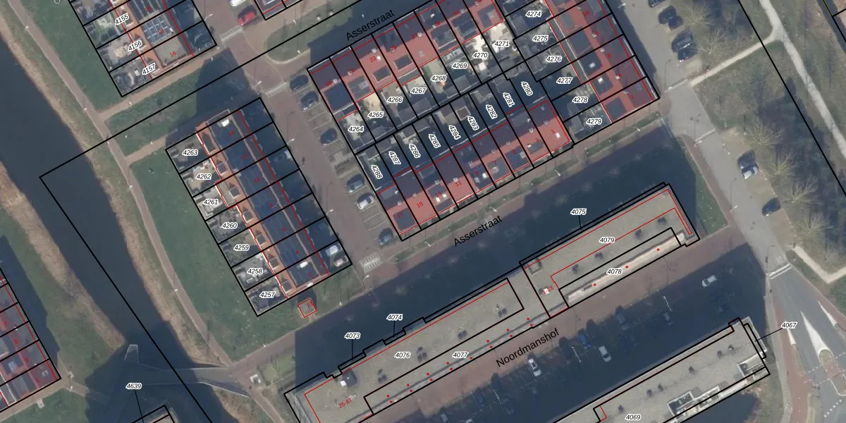 Gebruik de zoekbalk of klik op een perceel voor informatie over de adressen binnen dit perceel.