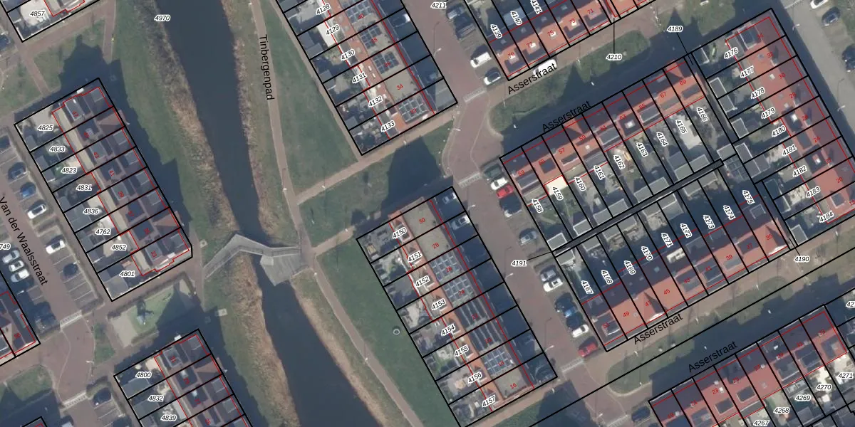 Gebruik de zoekbalk of klik op een perceel voor informatie over de adressen binnen dit perceel.