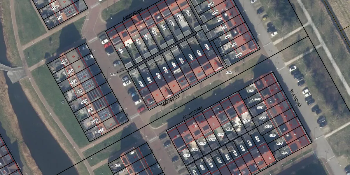 Asserstraat 45 is gelegen op kadastraal perceel KWK01C4170. Deze kadastrale aanduiding is uniek en wordt gebruikt door het Kadaster om eigendomsrechten en andere zakelijke rechten vast te leggen. Het perceel maakt onderdeel uit van de kadastrale gemeente Katwijk.