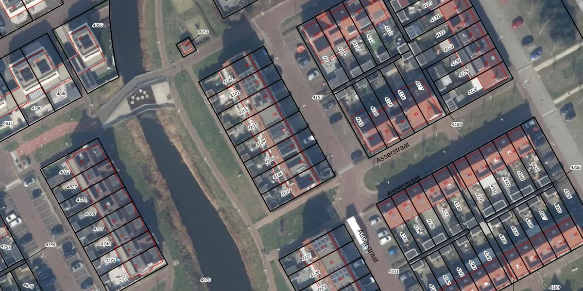 Asserstraat 50 is gelegen op kadastraal perceel KWK01C4105. Deze kadastrale aanduiding is uniek en wordt gebruikt door het Kadaster om eigendomsrechten en andere zakelijke rechten vast te leggen. Het perceel maakt onderdeel uit van de kadastrale gemeente Katwijk.