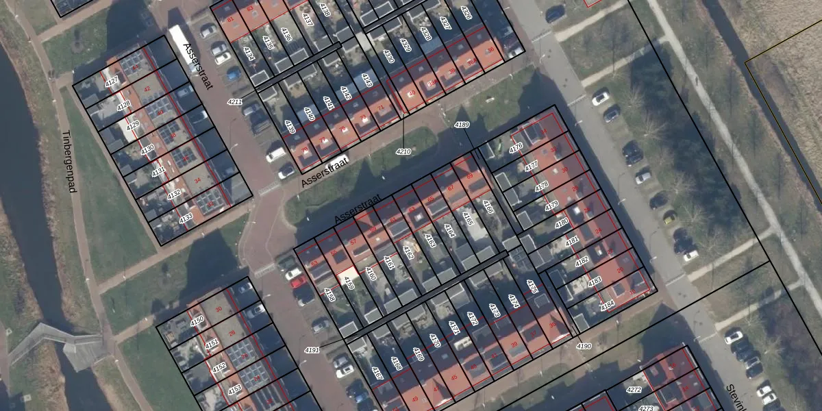 Het perceel waarop Asserstraat 63 staat heeft een oppervlakte van 136 m². Dit is een middelgroot perceel. De perceeloppervlakte wordt geregistreerd door het Kadaster. Gedetailleerde informatie over de maten van dit perceel kunt u vinden in het rapport Kadastrale kaart met maatvoering van Asserstraat 63.