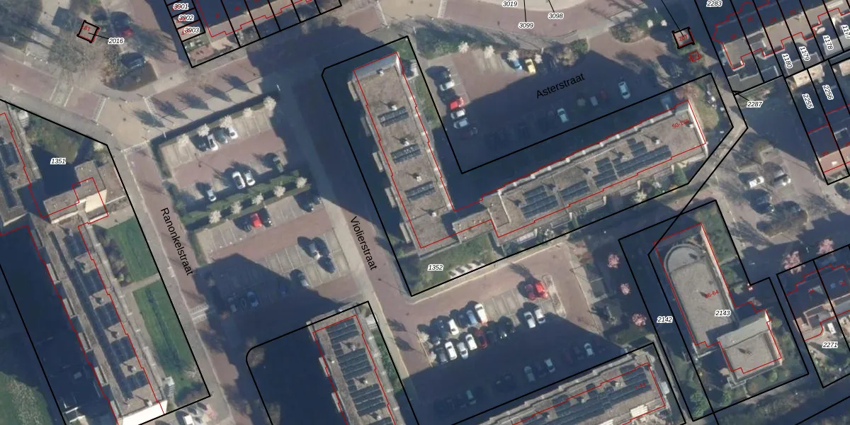 Het perceel waarop Asterstraat 124 staat heeft een oppervlakte van 2591 m². Dit is een zeer groot perceel. De perceeloppervlakte wordt geregistreerd door het Kadaster. Gedetailleerde informatie over de maten van dit perceel kunt u vinden in het rapport Kadastrale kaart met maatvoering van Asterstraat 124.
