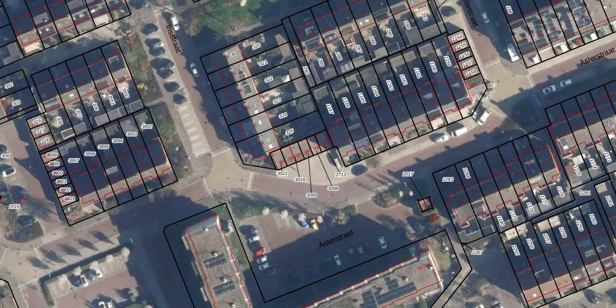 Het perceel waarop Asterstraat 35-C staat heeft een oppervlakte van 18 m². Dit is een klein perceel. De perceeloppervlakte wordt geregistreerd door het Kadaster. Gedetailleerde informatie over de maten van dit perceel kunt u vinden in het rapport Kadastrale kaart met maatvoering van Asterstraat 35-C.