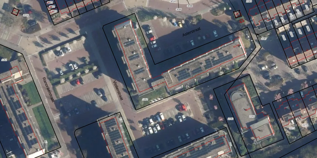 Het perceel waarop Asterstraat 58 staat heeft een oppervlakte van 2591 m². Dit is een zeer groot perceel. De perceeloppervlakte wordt geregistreerd door het Kadaster. Gedetailleerde informatie over de maten van dit perceel kunt u vinden in het rapport Kadastrale kaart met maatvoering van Asterstraat 58.