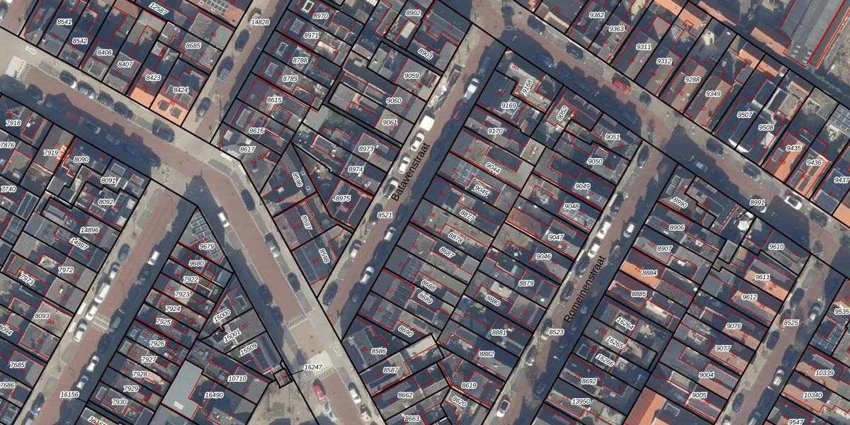 Gebruik de zoekbalk of klik op een perceel voor informatie over de adressen binnen dit perceel.