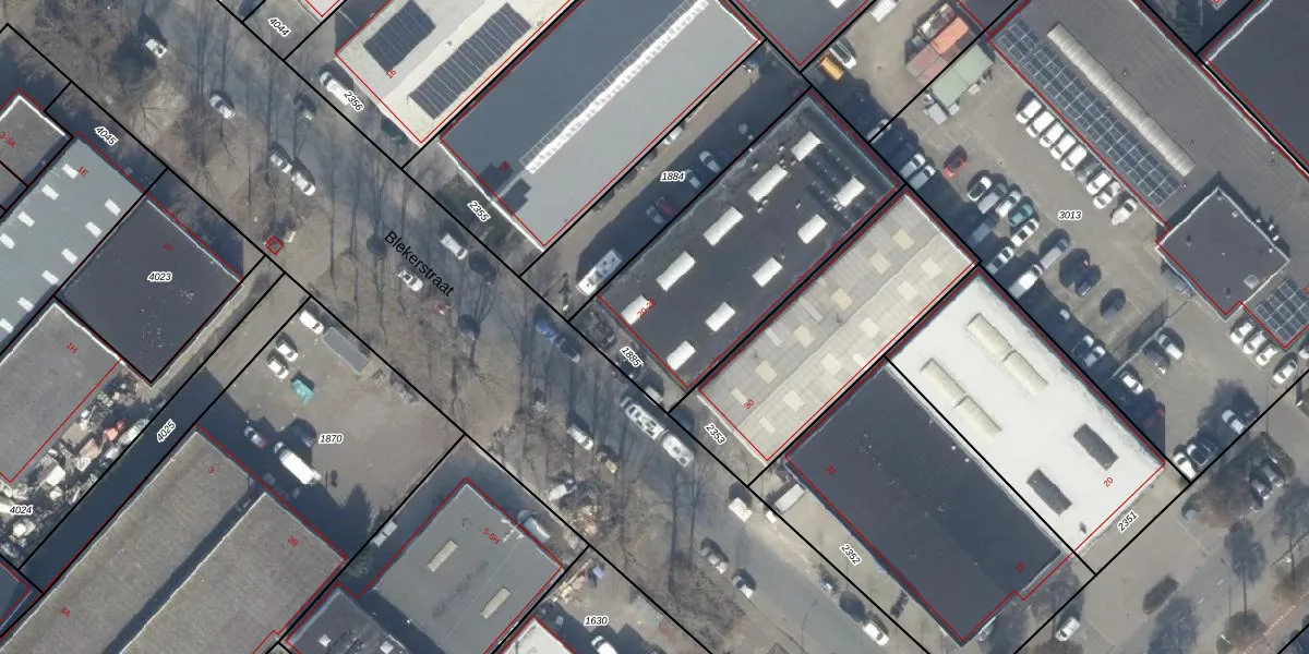 Het perceel waarop Blekerstraat 20 staat heeft een oppervlakte van 1066 m². Dit is een zeer groot perceel. De perceeloppervlakte wordt geregistreerd door het Kadaster. Gedetailleerde informatie over de maten van dit perceel kunt u vinden in het rapport Kadastrale kaart met maatvoering van Blekerstraat 20.