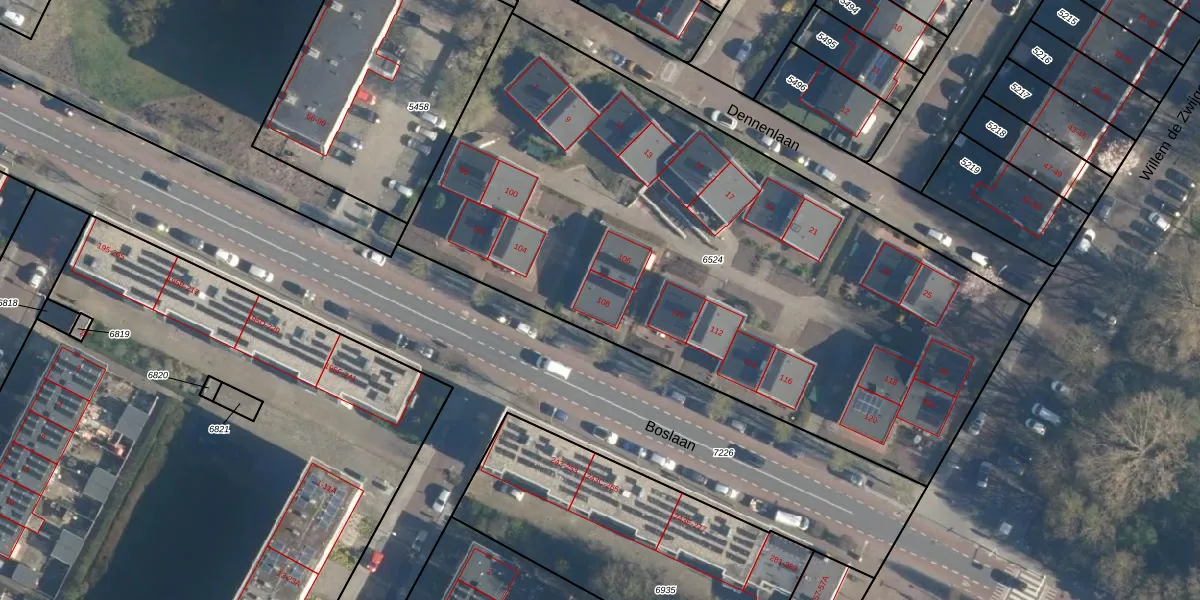 Het perceel waarop Boslaan 108 staat heeft een oppervlakte van 3815 m². Dit is een zeer groot perceel. De perceeloppervlakte wordt geregistreerd door het Kadaster. Gedetailleerde informatie over de maten van dit perceel kunt u vinden in het rapport Kadastrale kaart met maatvoering van Boslaan 108.