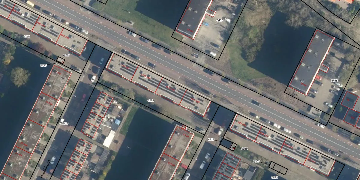 Het perceel waarop Boslaan 179 staat heeft een oppervlakte van 1215 m². Dit is een zeer groot perceel. De perceeloppervlakte wordt geregistreerd door het Kadaster. Gedetailleerde informatie over de maten van dit perceel kunt u vinden in het rapport Kadastrale kaart met maatvoering van Boslaan 179.