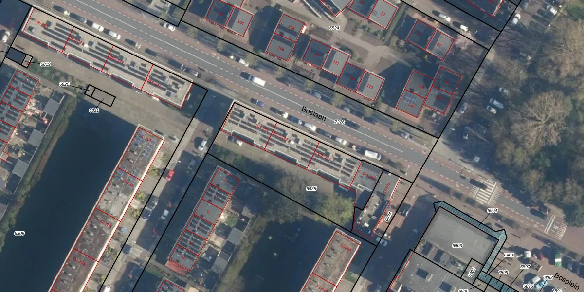 Boslaan 243-D is gelegen op kadastraal perceel KWK01B6935. Deze kadastrale aanduiding is uniek en wordt gebruikt door het Kadaster om eigendomsrechten en andere zakelijke rechten vast te leggen. Het perceel maakt onderdeel uit van de kadastrale gemeente Katwijk.