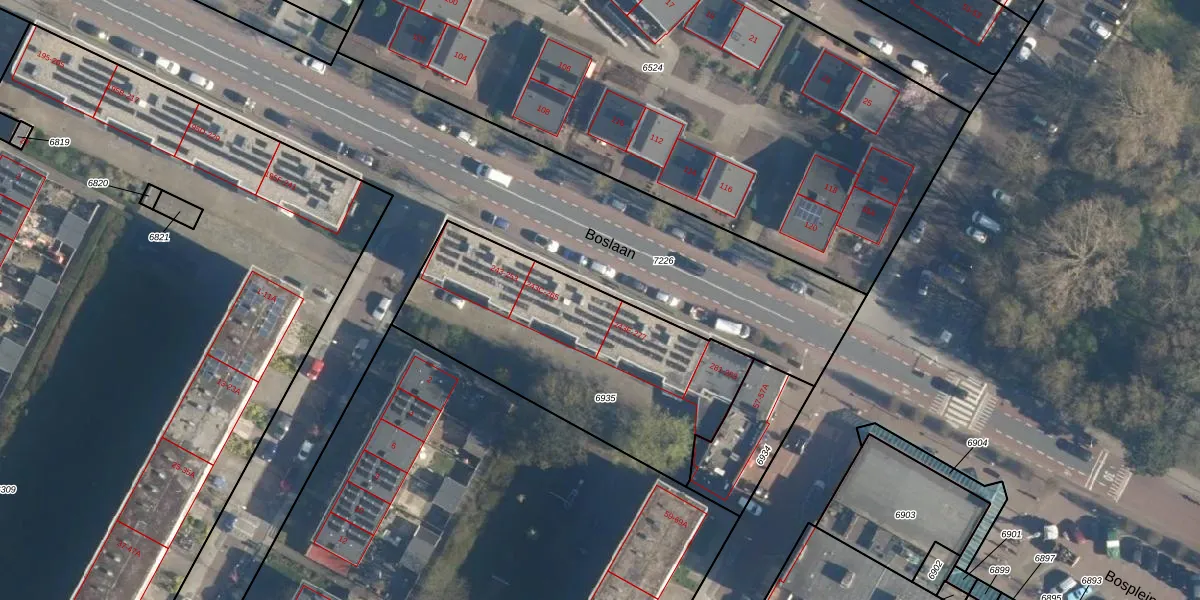 Het perceel waarop Boslaan 263 staat heeft een oppervlakte van 1188 m². Dit is een zeer groot perceel. De perceeloppervlakte wordt geregistreerd door het Kadaster. Gedetailleerde informatie over de maten van dit perceel kunt u vinden in het rapport Kadastrale kaart met maatvoering van Boslaan 263.