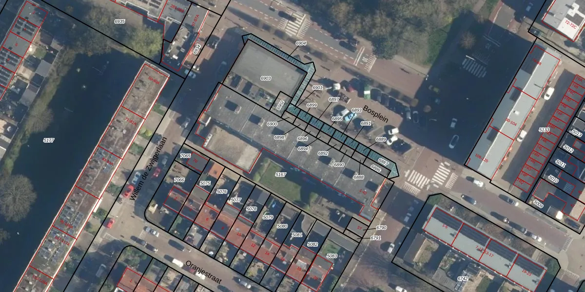 Het perceel waarop Bosplein 10 staat heeft een oppervlakte van 1618 m². Dit is een zeer groot perceel. De perceeloppervlakte wordt geregistreerd door het Kadaster. Gedetailleerde informatie over de maten van dit perceel kunt u vinden in het rapport Kadastrale kaart met maatvoering van Bosplein 10.