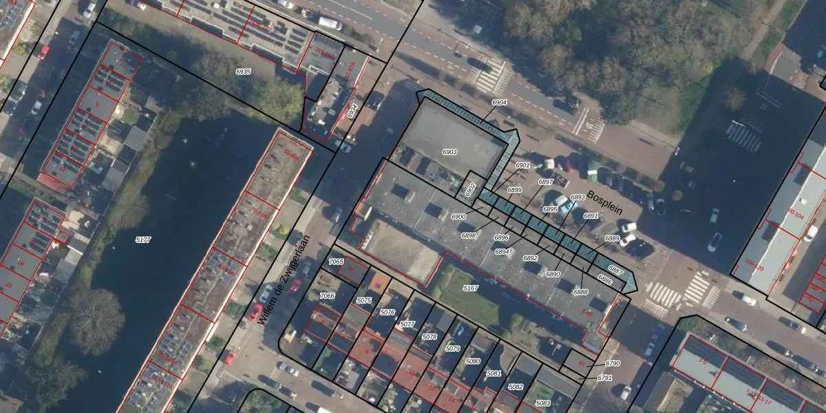 Bosplein 16 is gelegen op kadastraal perceel KWK01B5167. Deze kadastrale aanduiding is uniek en wordt gebruikt door het Kadaster om eigendomsrechten en andere zakelijke rechten vast te leggen. Het perceel maakt onderdeel uit van de kadastrale gemeente Katwijk.