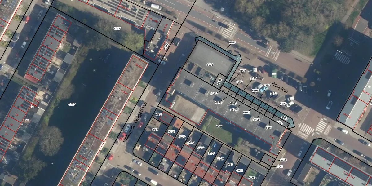 Bosplein 24 is gelegen op kadastraal perceel KWK01B5167. Deze kadastrale aanduiding is uniek en wordt gebruikt door het Kadaster om eigendomsrechten en andere zakelijke rechten vast te leggen. Het perceel maakt onderdeel uit van de kadastrale gemeente Katwijk.