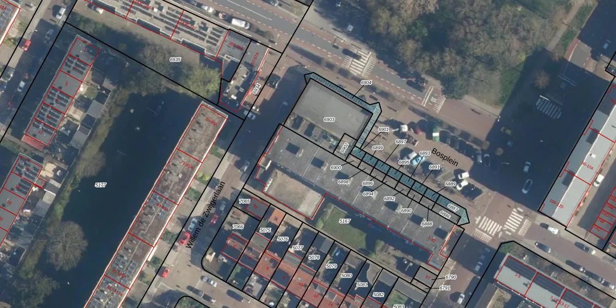 Bosplein 29 is gelegen op kadastraal perceel KWK01B5167. Deze kadastrale aanduiding is uniek en wordt gebruikt door het Kadaster om eigendomsrechten en andere zakelijke rechten vast te leggen. Het perceel maakt onderdeel uit van de kadastrale gemeente Katwijk.