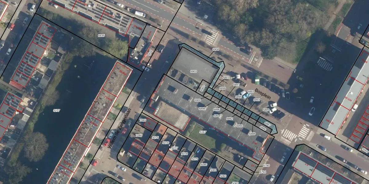 Bosplein 41 is gelegen op kadastraal perceel KWK01B5167. Deze kadastrale aanduiding is uniek en wordt gebruikt door het Kadaster om eigendomsrechten en andere zakelijke rechten vast te leggen. Het perceel maakt onderdeel uit van de kadastrale gemeente Katwijk.