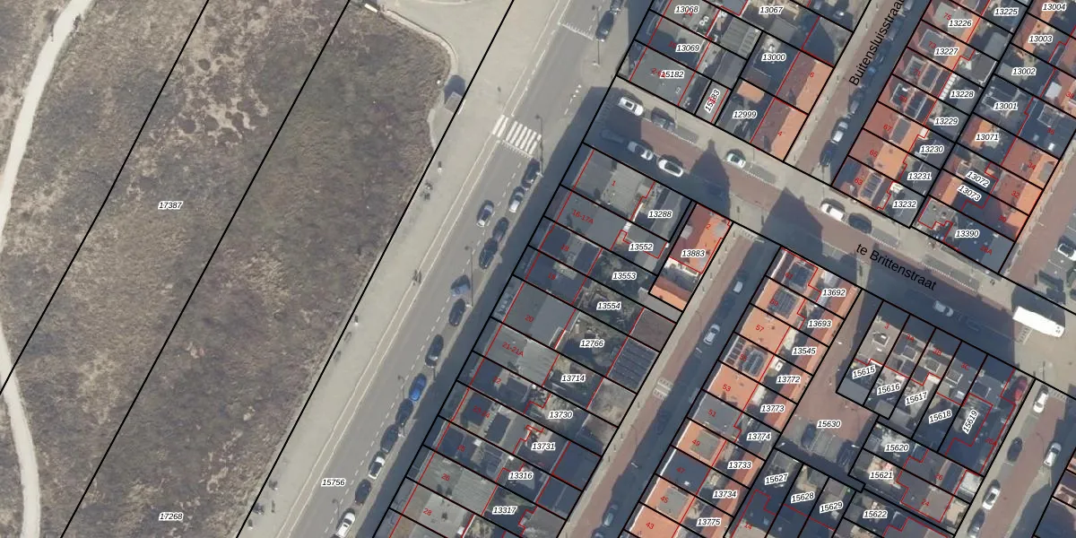 Het perceel waarop het adres ligt is KWK01-A-13554. De afkorting 'KWK01' staat voor kadastrale gemeente Katwijk. Het perceel is 190 m² groot. Dat is kleiner dan de gemiddelde perceeloppervlakte in Katwijk, dat op 1522,96 m² ligt. Het grootste perceel in de kadastrale gemeente is 5,24 km². Het kleinste perceel heeft een oppervlakte van 0 m². Dit is het enige adres dat aanwezig is op het perceel. De laatste wijziging in het de Basisregistratie Kadaster (BRK) was op 29-03-2000.