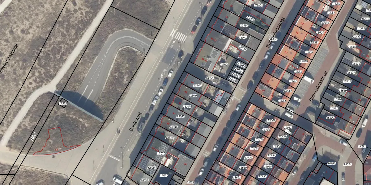 Het perceel waarop Boulevard 45 staat heeft een oppervlakte van 185 m². Dit is een middelgroot perceel. De perceeloppervlakte wordt geregistreerd door het Kadaster. Gedetailleerde informatie over de maten van dit perceel kunt u vinden in het rapport Kadastrale kaart met maatvoering van Boulevard 45.