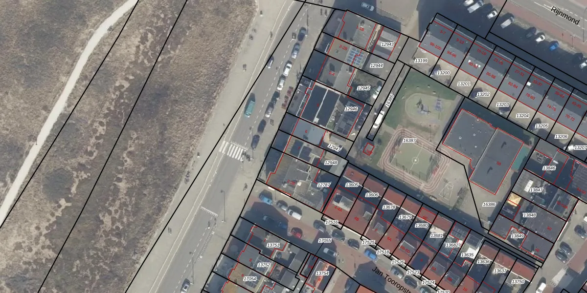 Het perceel waarop het adres ligt is KWK01-A-12948. De afkorting 'KWK01' staat voor kadastrale gemeente Katwijk. Het perceel is 170 m² groot. Dat is kleiner dan de gemiddelde perceeloppervlakte in Katwijk, dat op 1522,96 m² ligt. Het grootste perceel in de kadastrale gemeente is 5,24 km². Het kleinste perceel heeft een oppervlakte van 0 m². Op het perceel bevinden zich geen andere adressen. In de Basisregistratie Kadaster (BRK) werden de grenzen van het perceel geregistreerd op 29-03-2000.
