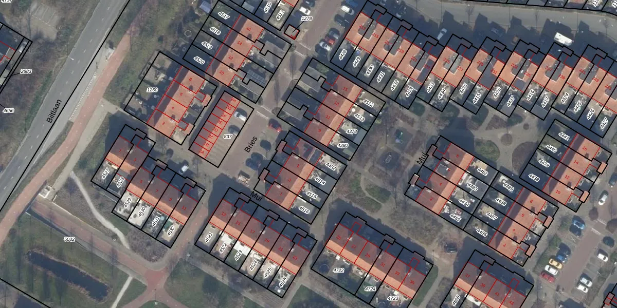 Het perceel waarop Bries 7 staat heeft een oppervlakte van 124 m². Dit is een middelgroot perceel. De perceeloppervlakte wordt geregistreerd door het Kadaster. Gedetailleerde informatie over de maten van dit perceel kunt u vinden in het rapport Kadastrale kaart met maatvoering van Bries 7.