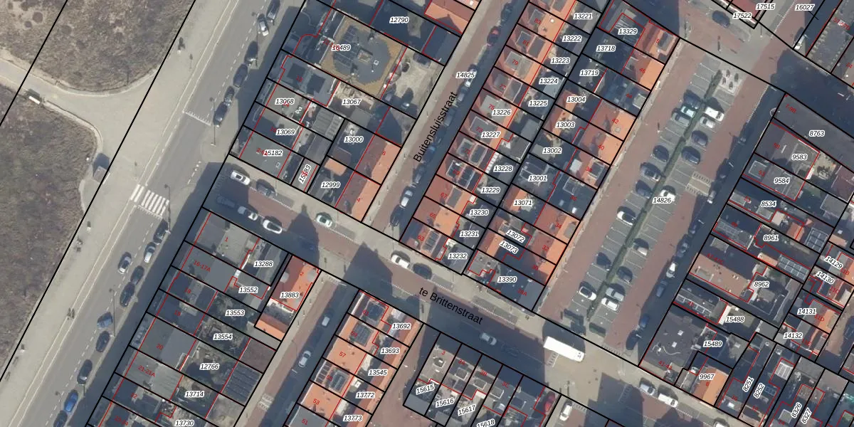 Het perceel waarop Buitensluisstraat 65 staat heeft een oppervlakte van 95 m². Dit is een klein perceel. De perceeloppervlakte wordt geregistreerd door het Kadaster. Gedetailleerde informatie over de maten van dit perceel kunt u vinden in het rapport Kadastrale kaart met maatvoering van Buitensluisstraat 65.
