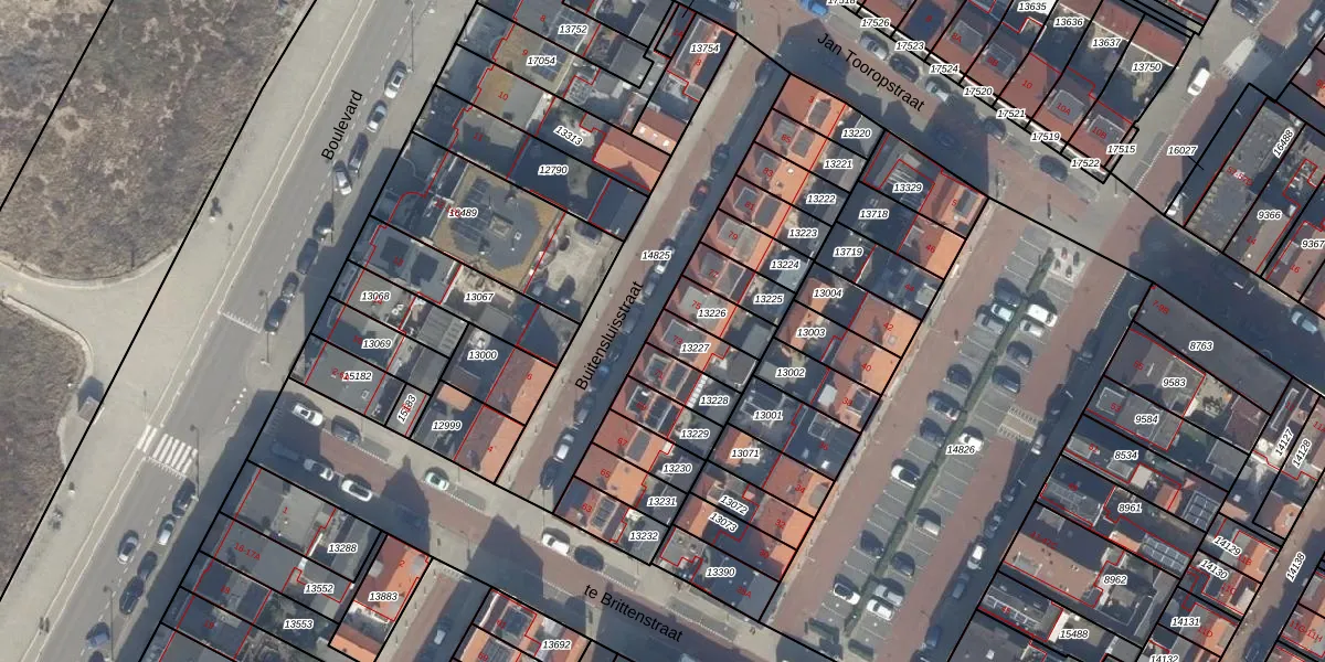 Het perceel waarop Buitensluisstraat 73 staat heeft een oppervlakte van 95 m². Dit is een klein perceel. De perceeloppervlakte wordt geregistreerd door het Kadaster. Gedetailleerde informatie over de maten van dit perceel kunt u vinden in het rapport Kadastrale kaart met maatvoering van Buitensluisstraat 73.