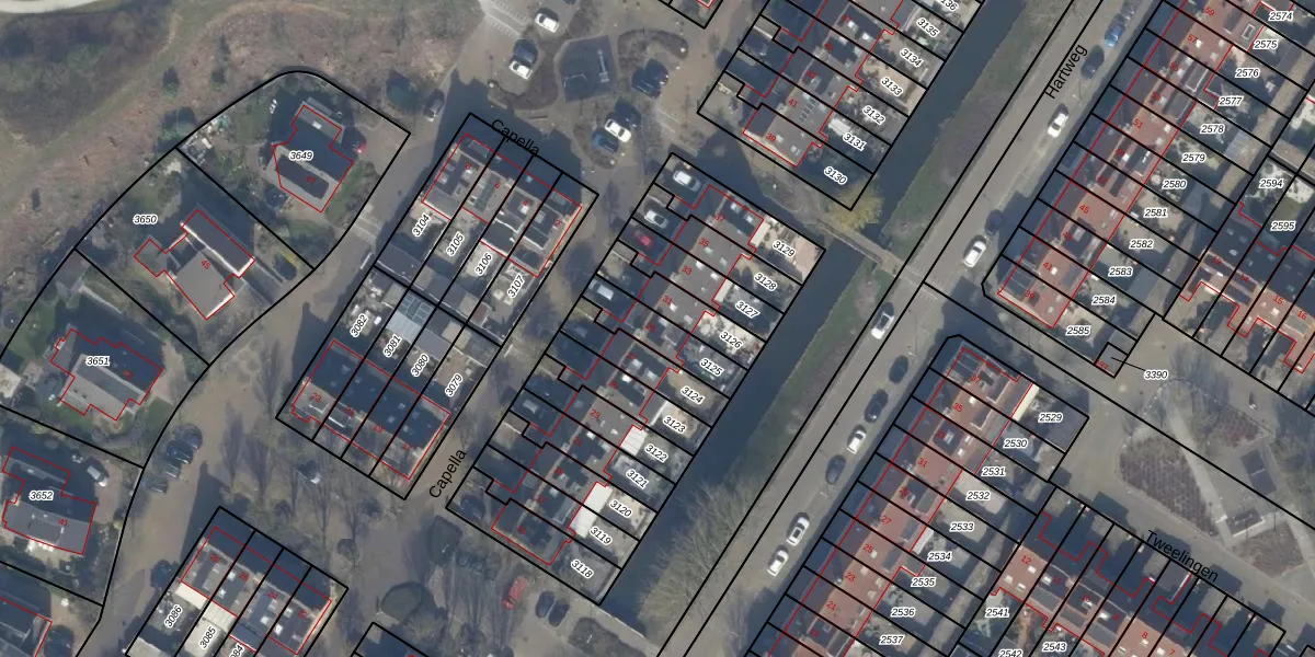 Gebruik de zoekbalk of klik op een perceel voor informatie over de adressen binnen dit perceel.