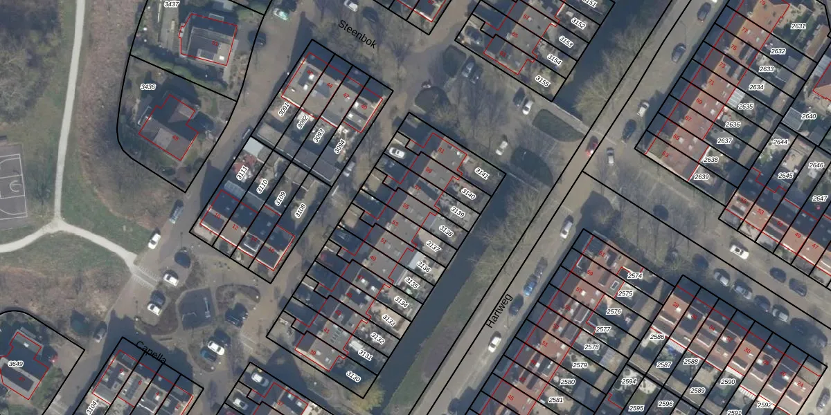 Gebruik de zoekbalk of klik op een perceel voor informatie over de adressen binnen dit perceel.