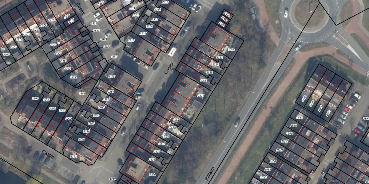 Het perceel waarop Castor 31 staat heeft een oppervlakte van 426 m². Dit is een groot perceel. De perceeloppervlakte wordt geregistreerd door het Kadaster. Gedetailleerde informatie over de maten van dit perceel kunt u vinden in het rapport Kadastrale kaart met maatvoering van Castor 31.
