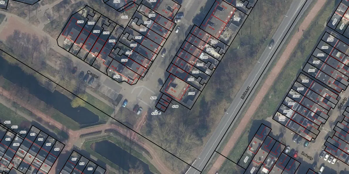 Het perceel waarop Castor 41 staat heeft een oppervlakte van 250 m². Dit is een middelgroot perceel. De perceeloppervlakte wordt geregistreerd door het Kadaster. Gedetailleerde informatie over de maten van dit perceel kunt u vinden in het rapport Kadastrale kaart met maatvoering van Castor 41.