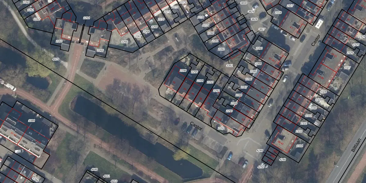 Castor 44 is gelegen op kadastraal perceel KWK01C2295. Deze kadastrale aanduiding is uniek en wordt gebruikt door het Kadaster om eigendomsrechten en andere zakelijke rechten vast te leggen. Het perceel maakt onderdeel uit van de kadastrale gemeente Katwijk.