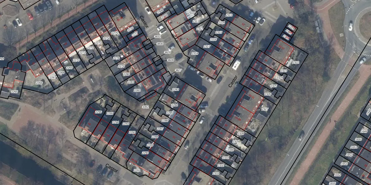 Het perceel waarop Castor 57 staat heeft een oppervlakte van 209 m². Dit is een middelgroot perceel. De perceeloppervlakte wordt geregistreerd door het Kadaster. Gedetailleerde informatie over de maten van dit perceel kunt u vinden in het rapport Kadastrale kaart met maatvoering van Castor 57.