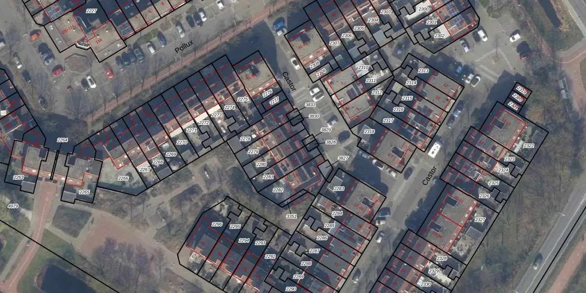 Het perceel waarop Castor 63 staat heeft een oppervlakte van 121 m². Dit is een middelgroot perceel. De perceeloppervlakte wordt geregistreerd door het Kadaster. Gedetailleerde informatie over de maten van dit perceel kunt u vinden in het rapport Kadastrale kaart met maatvoering van Castor 63.