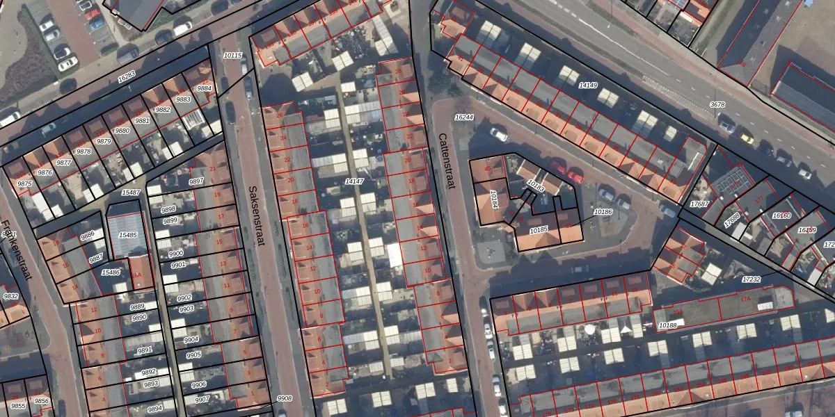 Het perceel waarop Cattenstraat 16 staat heeft een oppervlakte van 4210 m². Dit is een zeer groot perceel. De perceeloppervlakte wordt geregistreerd door het Kadaster. Gedetailleerde informatie over de maten van dit perceel kunt u vinden in het rapport Kadastrale kaart met maatvoering van Cattenstraat 16.