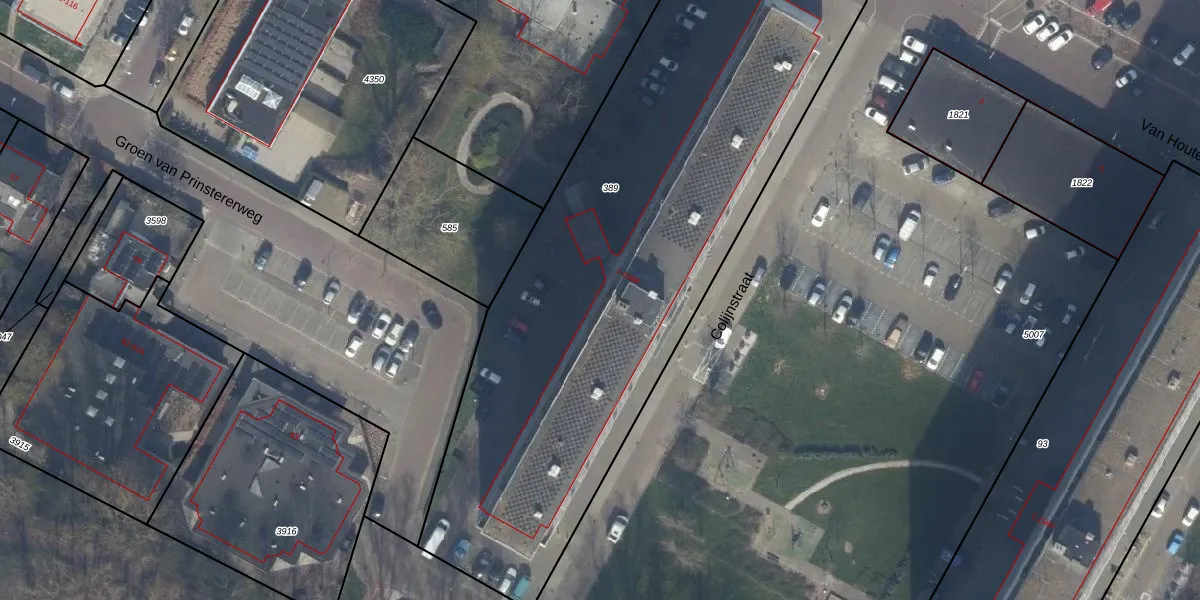 Het perceel waarop Colijnstraat 155 staat heeft een oppervlakte van 3366 m². Dit is een zeer groot perceel. De perceeloppervlakte wordt geregistreerd door het Kadaster. Gedetailleerde informatie over de maten van dit perceel kunt u vinden in het rapport Kadastrale kaart met maatvoering van Colijnstraat 155.
