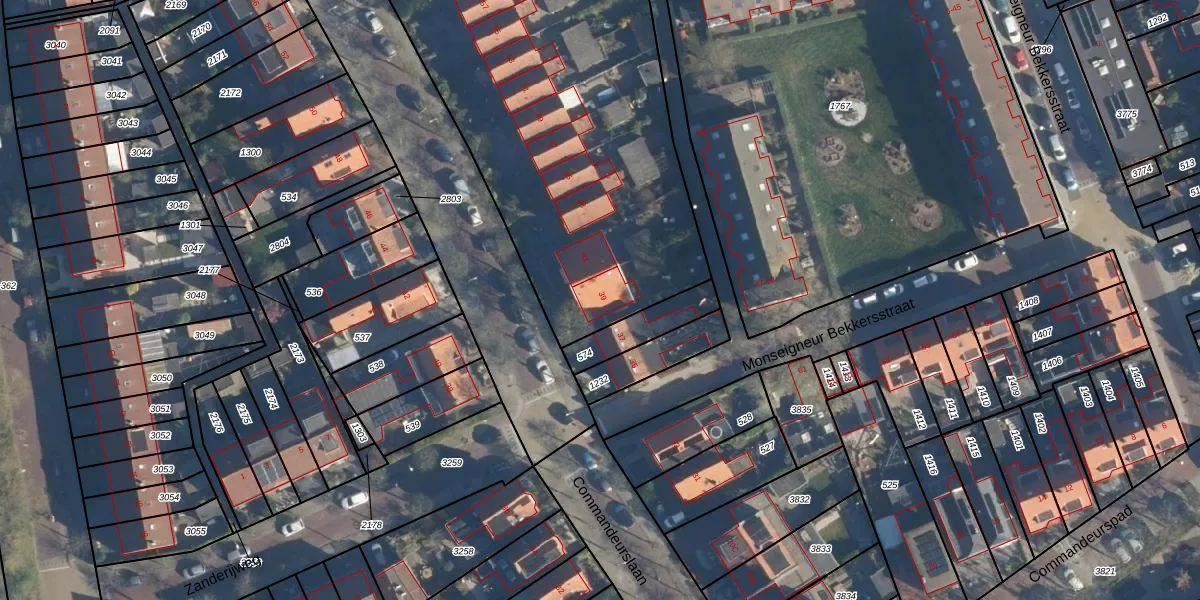 Het perceel waarop Commandeurslaan 39 staat heeft een oppervlakte van 3532 m². Dit is een zeer groot perceel. De perceeloppervlakte wordt geregistreerd door het Kadaster. Gedetailleerde informatie over de maten van dit perceel kunt u vinden in het rapport Kadastrale kaart met maatvoering van Commandeurslaan 39.
