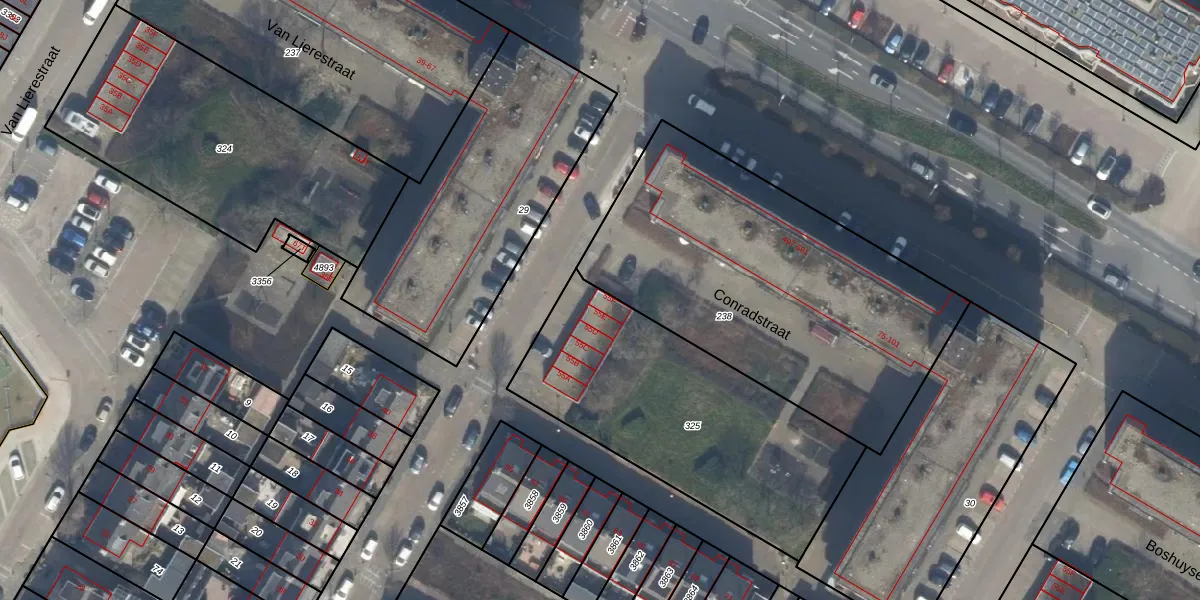 Conradstraat 55-F is gelegen op kadastraal perceel KWK01C325. Deze kadastrale aanduiding is uniek en wordt gebruikt door het Kadaster om eigendomsrechten en andere zakelijke rechten vast te leggen. Het perceel maakt onderdeel uit van de kadastrale gemeente Katwijk.