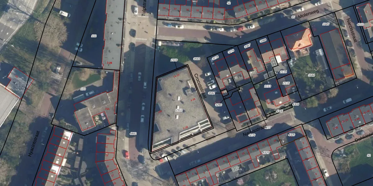 Het perceel waarop Crocusstraat 12 staat heeft een oppervlakte van 941 m². Dit is een groot perceel. De perceeloppervlakte wordt geregistreerd door het Kadaster. Gedetailleerde informatie over de maten van dit perceel kunt u vinden in het rapport Kadastrale kaart met maatvoering van Crocusstraat 12.
