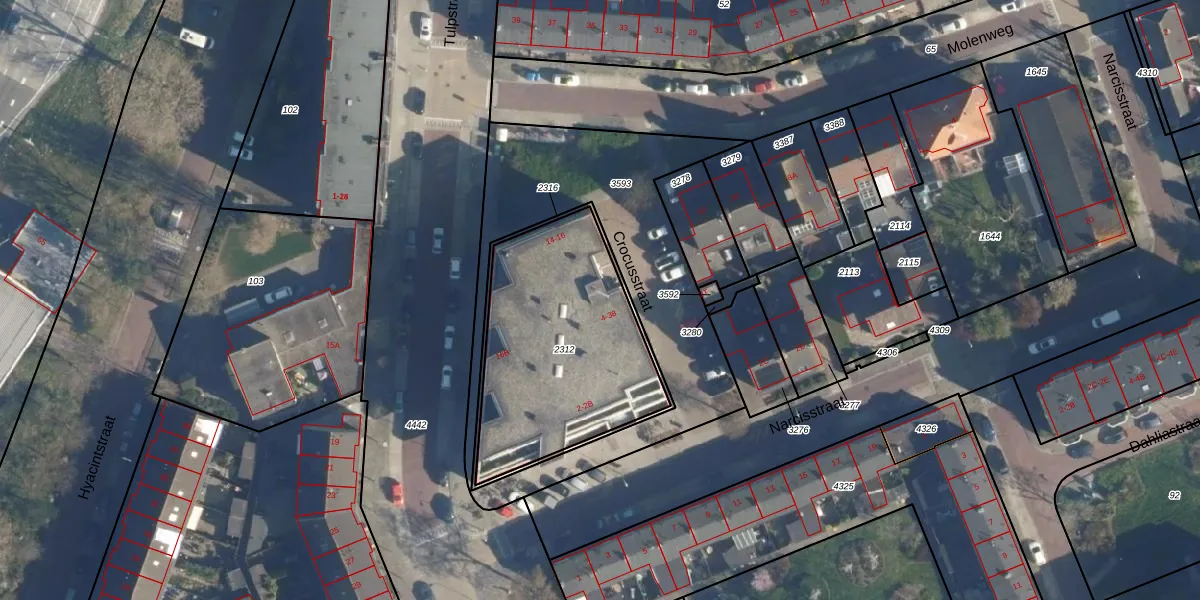 Het perceel waarop Crocusstraat 14 staat heeft een oppervlakte van 941 m². Dit is een groot perceel. De perceeloppervlakte wordt geregistreerd door het Kadaster. Gedetailleerde informatie over de maten van dit perceel kunt u vinden in het rapport Kadastrale kaart met maatvoering van Crocusstraat 14.