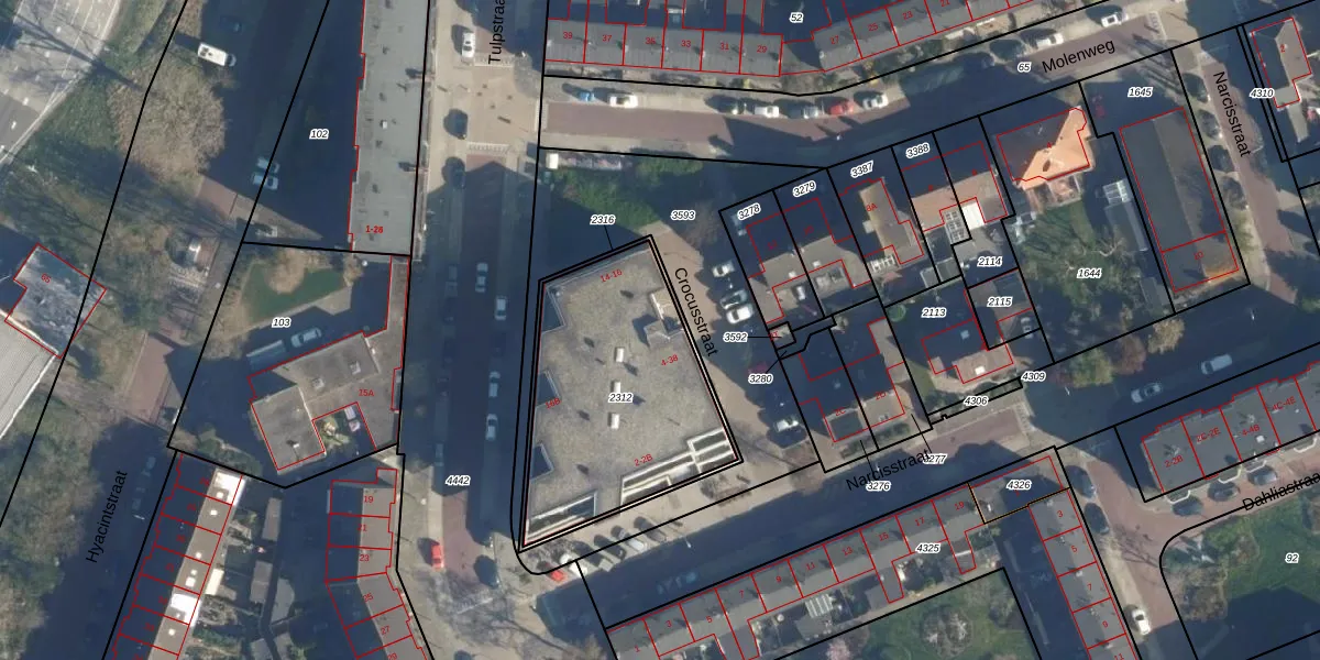 Crocusstraat 30 is gelegen op kadastraal perceel KWK01D2312. Deze kadastrale aanduiding is uniek en wordt gebruikt door het Kadaster om eigendomsrechten en andere zakelijke rechten vast te leggen. Het perceel maakt onderdeel uit van de kadastrale gemeente Katwijk.