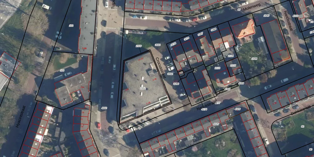 Het perceel waarop Crocusstraat 34 staat heeft een oppervlakte van 941 m². Dit is een groot perceel. De perceeloppervlakte wordt geregistreerd door het Kadaster. Gedetailleerde informatie over de maten van dit perceel kunt u vinden in het rapport Kadastrale kaart met maatvoering van Crocusstraat 34.