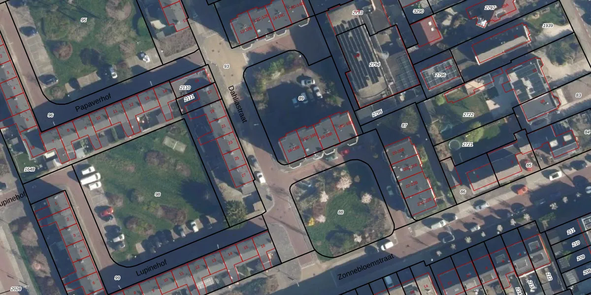 Het perceel waarop Dahliastraat 16-B staat heeft een oppervlakte van 1010 m². Dit is een zeer groot perceel. De perceeloppervlakte wordt geregistreerd door het Kadaster. Gedetailleerde informatie over de maten van dit perceel kunt u vinden in het rapport Kadastrale kaart met maatvoering van Dahliastraat 16-B.