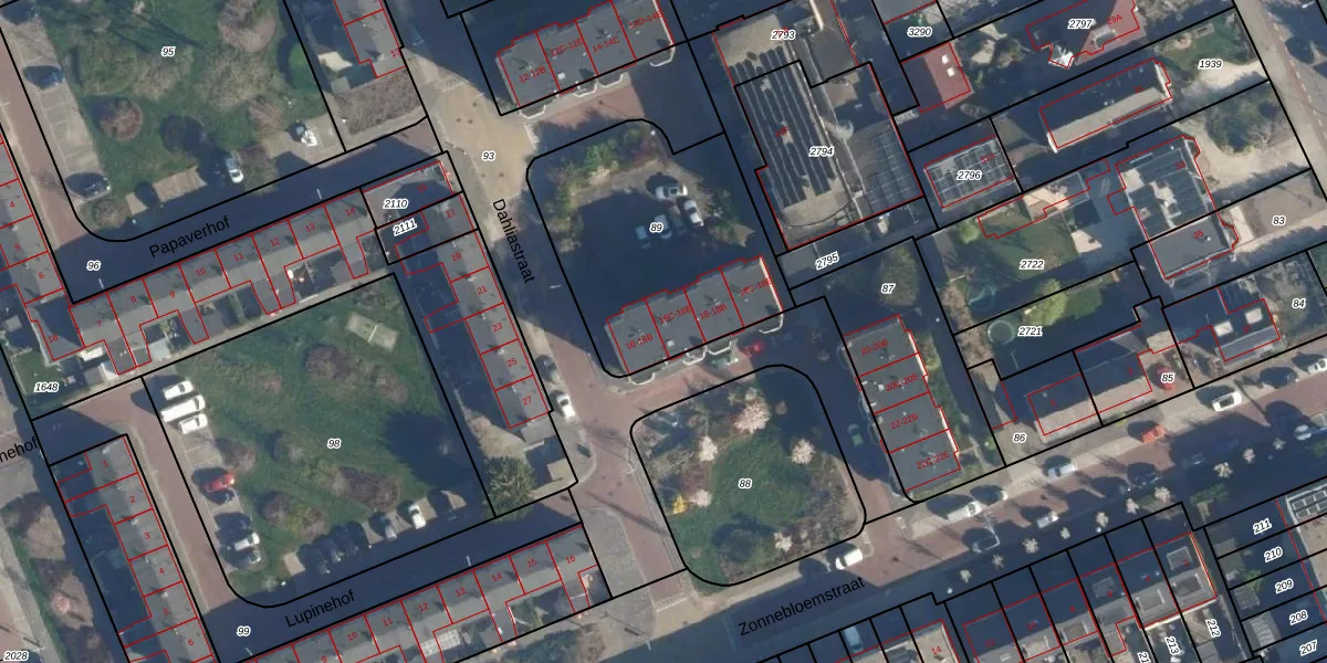Het perceel waarop Dahliastraat 16-C staat heeft een oppervlakte van 1010 m². Dit is een zeer groot perceel. De perceeloppervlakte wordt geregistreerd door het Kadaster. Gedetailleerde informatie over de maten van dit perceel kunt u vinden in het rapport Kadastrale kaart met maatvoering van Dahliastraat 16-C.
