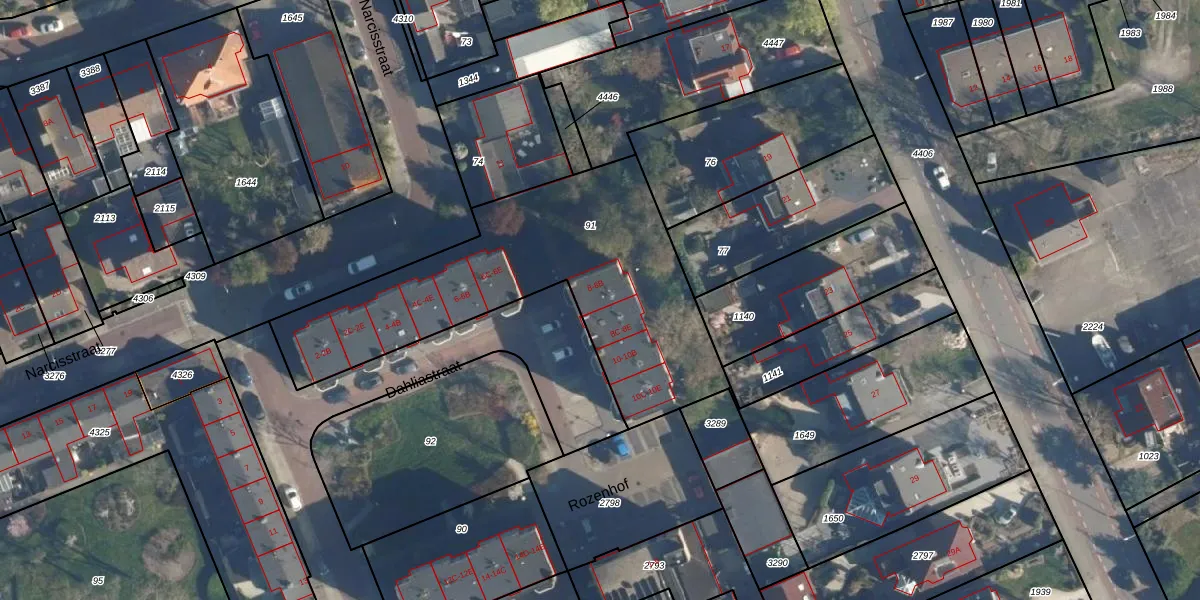Het perceel waarop Dahliastraat 8-B staat heeft een oppervlakte van 1400 m². Dit is een zeer groot perceel. De perceeloppervlakte wordt geregistreerd door het Kadaster. Gedetailleerde informatie over de maten van dit perceel kunt u vinden in het rapport Kadastrale kaart met maatvoering van Dahliastraat 8-B.