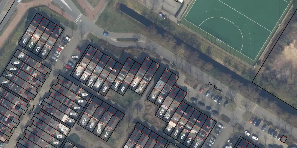 Het perceel waarop De Krom 13 staat heeft een oppervlakte van 131 m². Dit is een middelgroot perceel. De perceeloppervlakte wordt geregistreerd door het Kadaster. Gedetailleerde informatie over de maten van dit perceel kunt u vinden in het rapport Kadastrale kaart met maatvoering van De Krom 13.