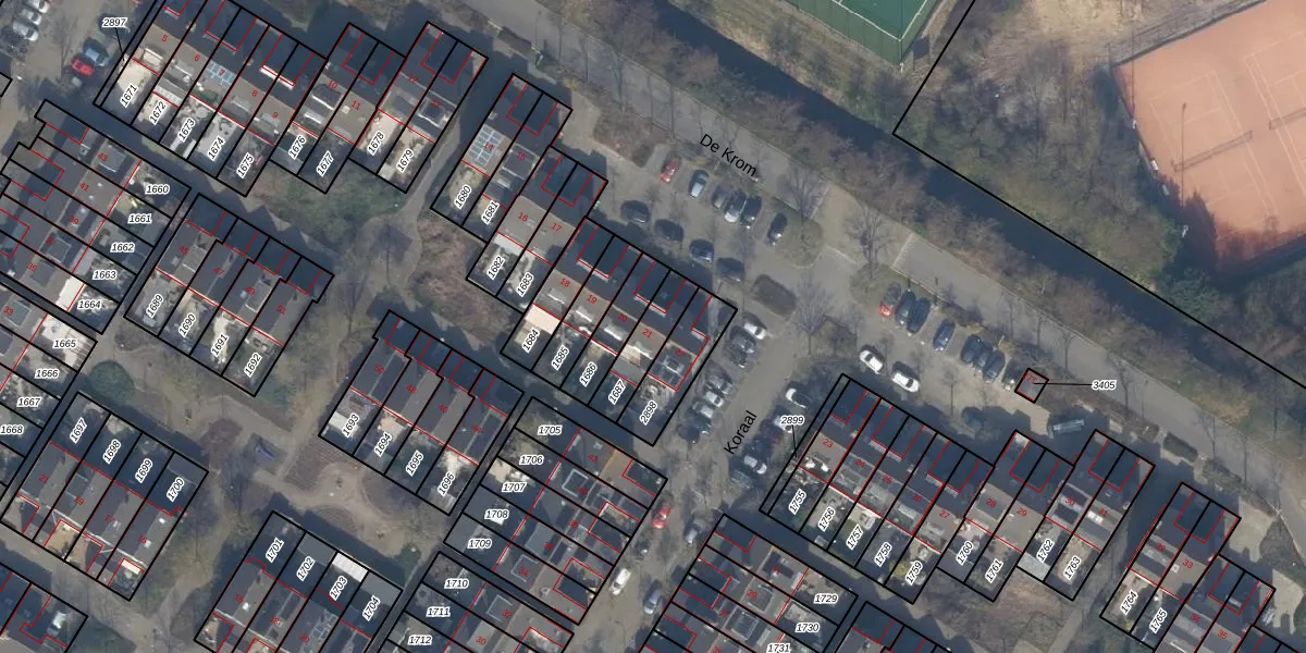 Het perceel waarop De Krom 21 staat heeft een oppervlakte van 125 m². Dit is een middelgroot perceel. De perceeloppervlakte wordt geregistreerd door het Kadaster. Gedetailleerde informatie over de maten van dit perceel kunt u vinden in het rapport Kadastrale kaart met maatvoering van De Krom 21.