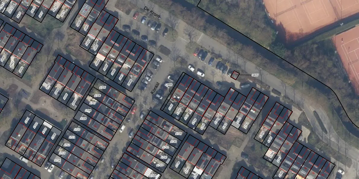 Het perceel waarop De Krom 23 staat heeft een oppervlakte van 132 m². Dit is een middelgroot perceel. De perceeloppervlakte wordt geregistreerd door het Kadaster. Gedetailleerde informatie over de maten van dit perceel kunt u vinden in het rapport Kadastrale kaart met maatvoering van De Krom 23.