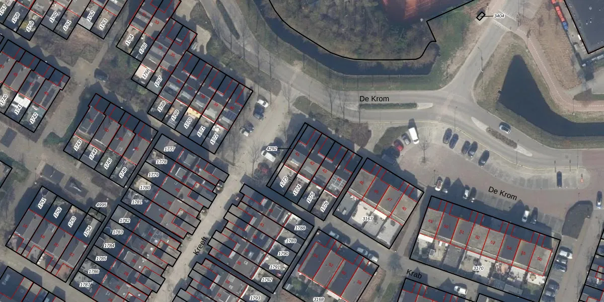 Het perceel waarop De Krom 41 staat heeft een oppervlakte van 132 m². Dit is een middelgroot perceel. De perceeloppervlakte wordt geregistreerd door het Kadaster. Gedetailleerde informatie over de maten van dit perceel kunt u vinden in het rapport Kadastrale kaart met maatvoering van De Krom 41.